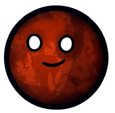 Earth after the collision of Proto-Earth and Theia is very similar to Proto's design, albeit being completely red instead. There’s small darker patches around his eyes and mouth and it’s clear the Earth is still cooling down.
